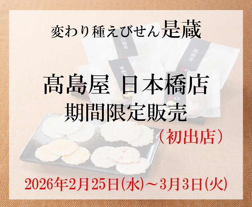 2月~3月の是蔵せんべい 催事販売のお知らせ